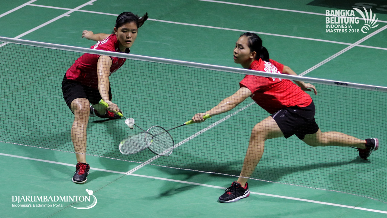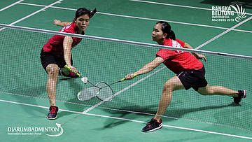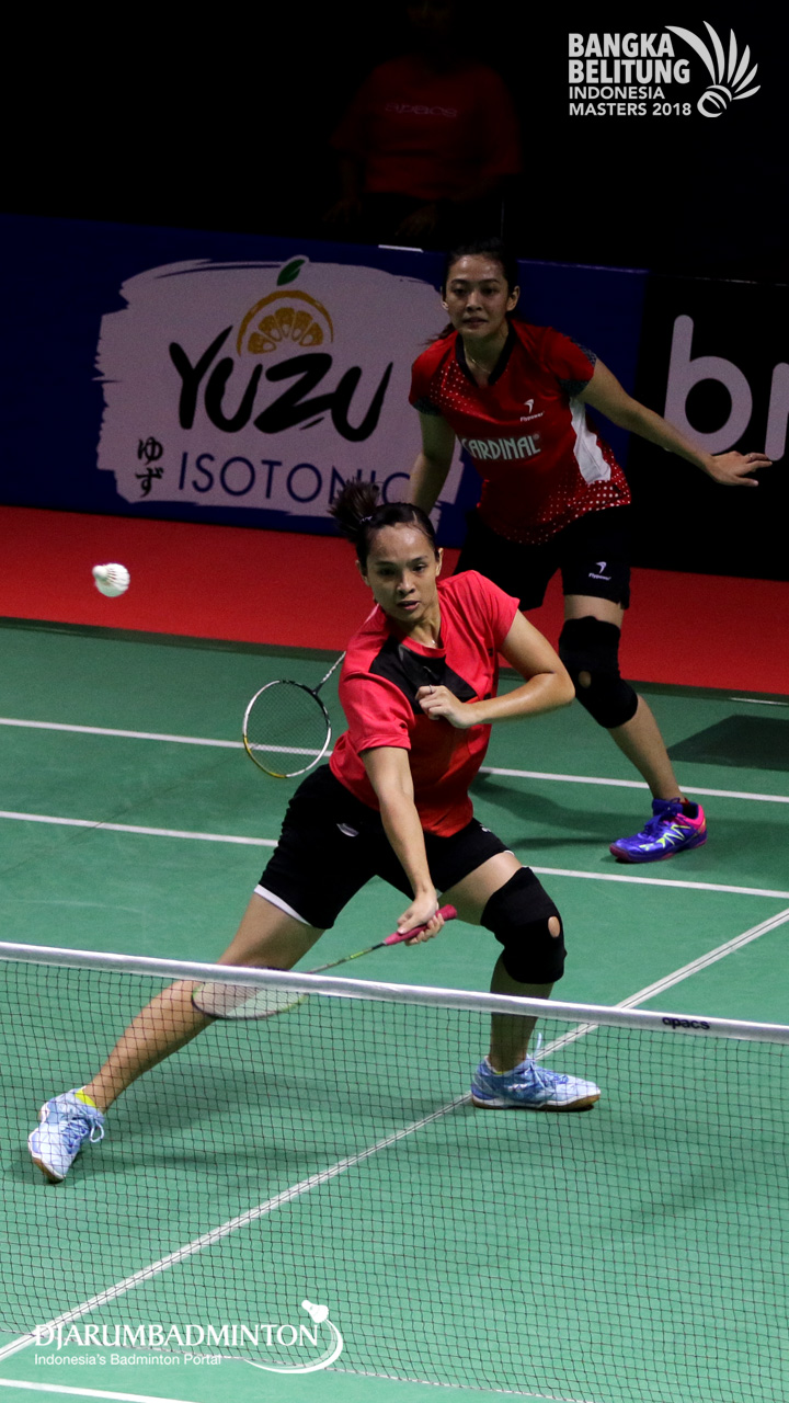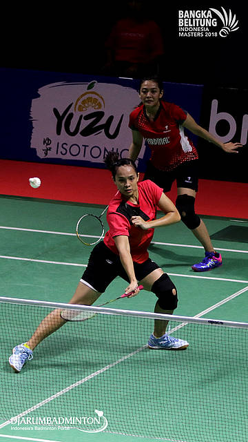 Maretha Dea Giovani/Masita Mahmudin (INA) menghadang serangan