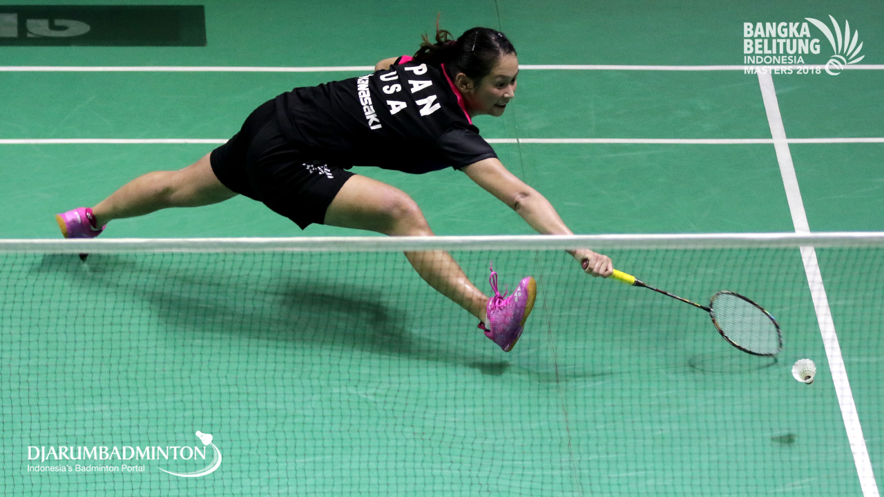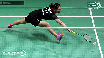 Crystal Pan (USA) mengembalikan shuttlecock