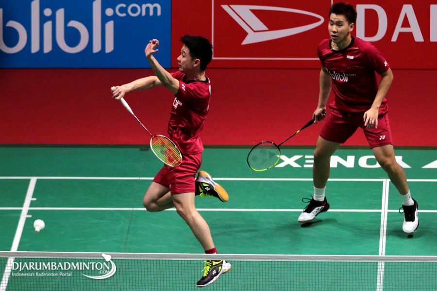 Kevin Sanjaya Sukamuljo/Marcus Fernaldi Gideon (Indonesia) Menghadang Pengembalian