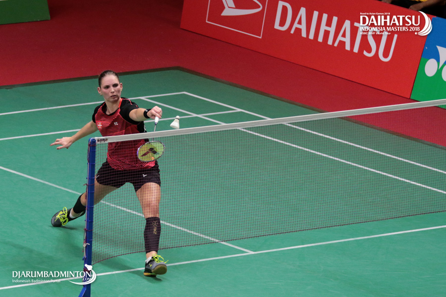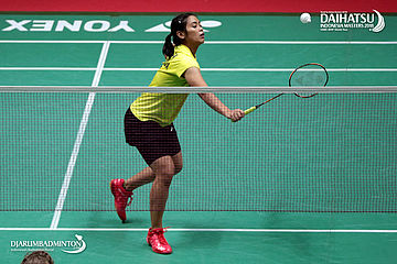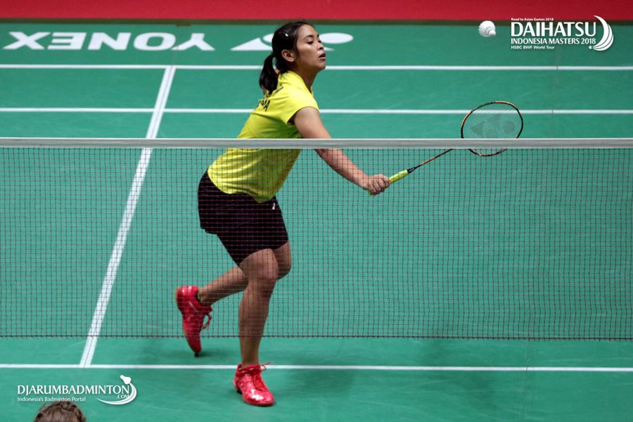 Gregoria Mariska Tunjung (Indonesia) Mengembalikan Shuttlecock