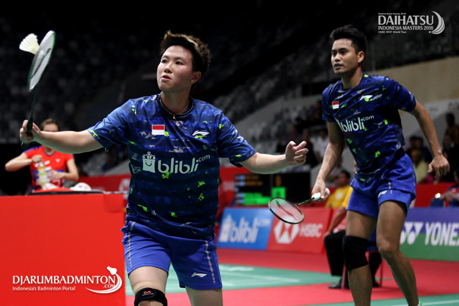 Tontowi Ahmad/Liliyana Natsir (Indonesia) Mengembalikan Shuttlecock