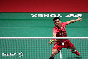 Kazumasa Sakai (Jepang) Mengembalikan Shuttlecock