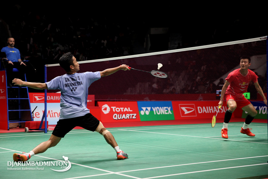 Sony Dwi Kuncoro (Indonesia) Mengembalikan Shuttlecock