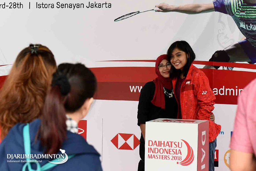 Gregoria Mariska (Indonesia) Berfoto Bersama Salah Satu Fans Saat Meet And Greet Daihatsu Indonesia Masters 2018