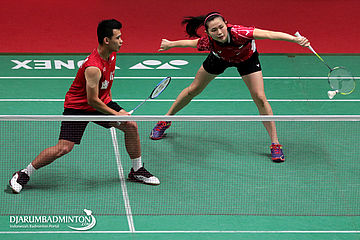 Yantoni Edy Saputra/Marsheilla Gischa Islami (Indonesia) Melepaskan Serangan