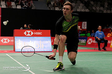 Viktor Axelsen (Denmark) Berusaha Menghadang Serangan
