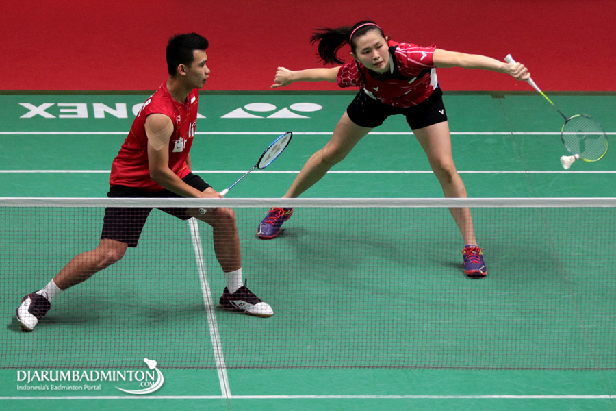 Rinov Rivaldy/Angelica Wiratama (Indonesia) Menghadang Serangan