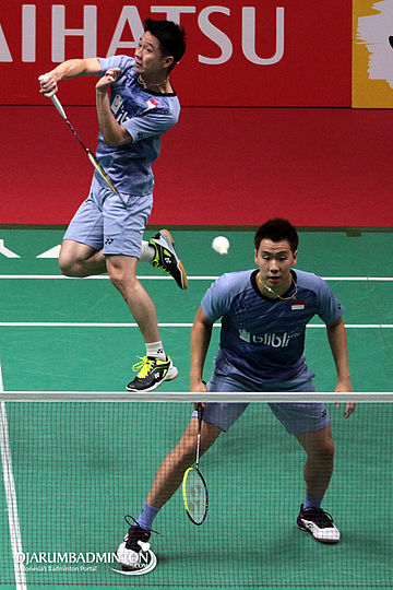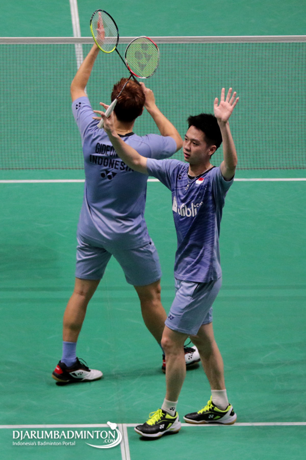 Kevin Sanjaya Sukamuljo/Marcus Fernaldi Gideon (Indonesia) Melepaskan Serangan