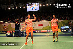 Jakarta, - The home team's pair in Men's Doubles sector, Hendra Setiawan/Muhammad Ahsan, fail to join the compatriots Greysia Polii/Nitya Krishinda who are playing in Women's Doubles category to perform in the final round of the BCA Indonesia Open Super Series Premier 2015. They were ousted in a semifinal round by Chinese pair, Zhang Nan/Fu Haifang, 22-20, 18-21 and 21-15 on Saturday evening (06/06).