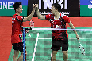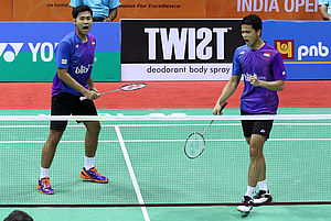 NEW DELHI - "Perang" saudara antara Angga Pratama/Ricky Karanda Suwardi dan Kevin Sanjaya Sukamuljo/Gideon Marcus Fernaldi di babak final India Open...