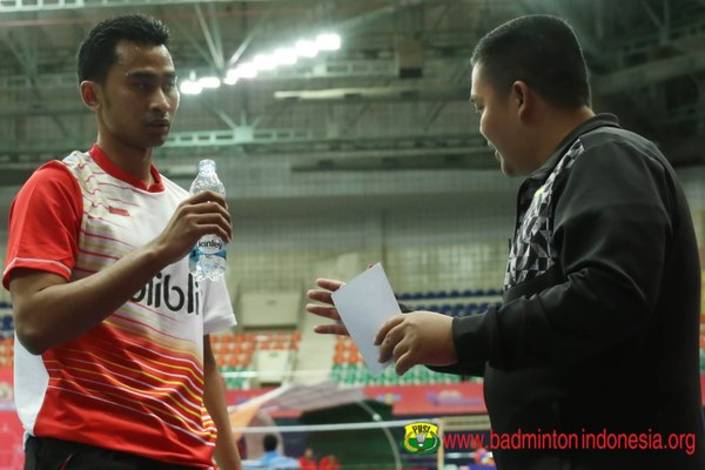 “Di game pertama, pada saat unggul 15-10 service Tommy menyangkut di net dan dari situ konsentrasi sedikit goyah, sehingga lawan cepat sekali menyusul. Pada poiin 23-22 Tommy sebenarnya punya peluang untuk menang, tetapi memang dia terpeleset tadi,” kata Toto Sunarto Pelatih Tommy Sugiarto