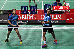 MAKASSAR - Laju pasangan ganda campuran wakil PB Jaya Raya Jakarta, Rian Swastedian/Apriani Rahayu di ajang Djarum Sirkuit Nasional (Djarum Sirnas) Li...