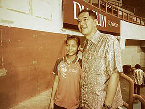 Ketua Umum PP PBSI Gita Wirjawan datang berkunjung ke GOR Sudiang, Makassar, untuk memantau langsung jalannya pertandingan Djarum Sirkuit Nasional...