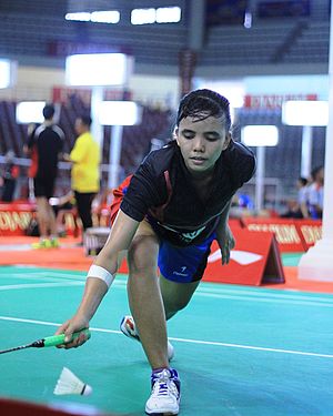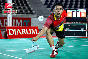 Basri Pasaribu berhasil menyedot perhatian pengunjung Djarum Sirkuit Nasional (Sirnas) Sumatera Utara Open 2013, Selasa, (10/9). Meskipun kalah 18-21,...
