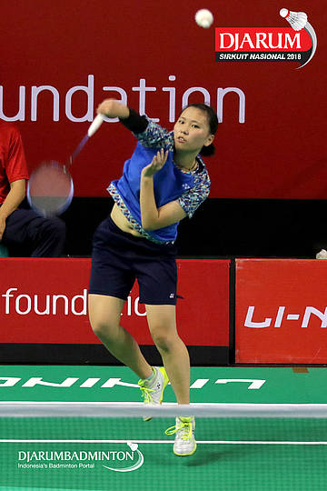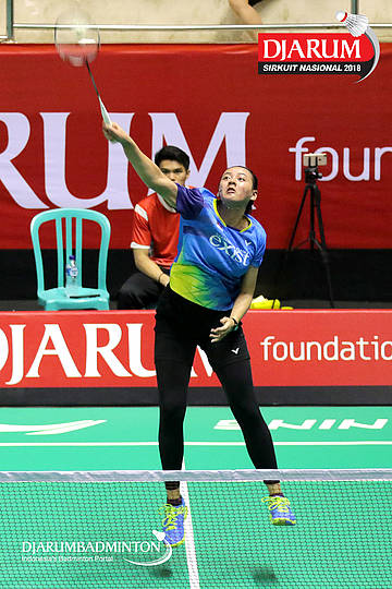 Mega Ciputra (Sakura Badminton, Sby) mengembalikan serangan