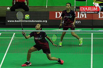 Bryan Sydney/Dea Putri (Tangkas) mengembalikan shuttecock