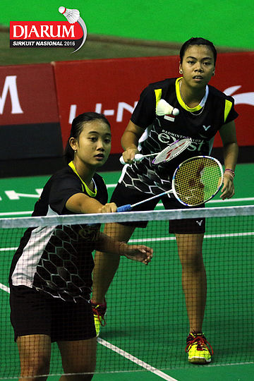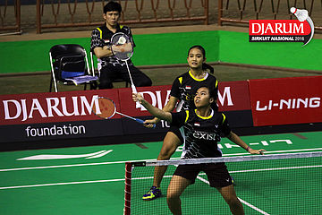 Rifa Siti/Windy Aulia (Exist Sampurna) mengembalikan shuttlecock