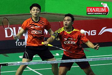 Hendra Aprida/Markis Kido (Djarum Kudus/Jaya Raya) menghadang serangan