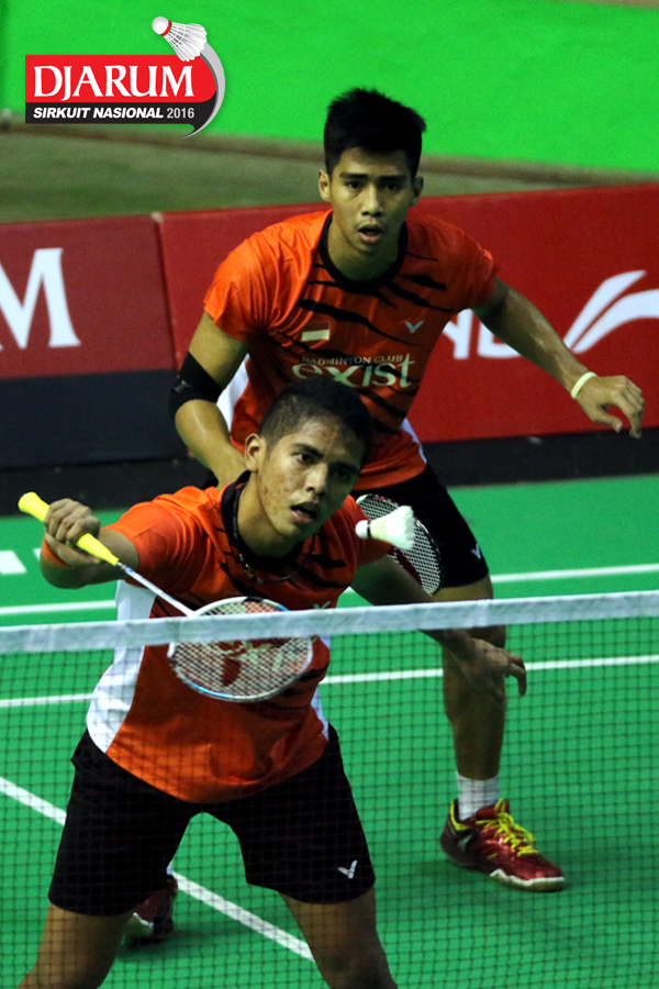 Franky Wijaya/Sabar Karyaman (Exist) menyambut serve