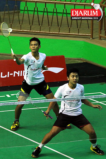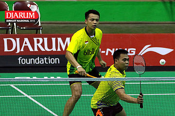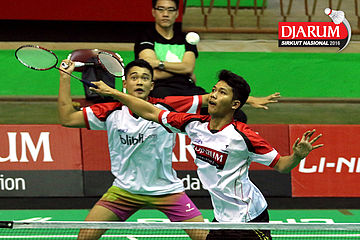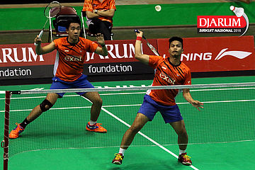 Ardy Nugroho/Ario Bimo (Djarum Kudus) menghadang serangan