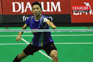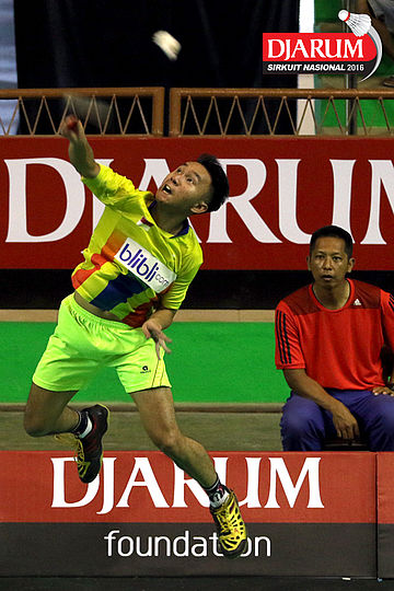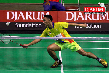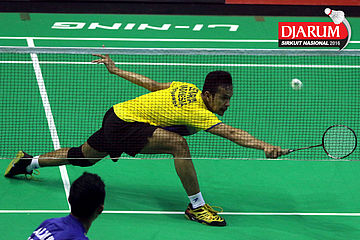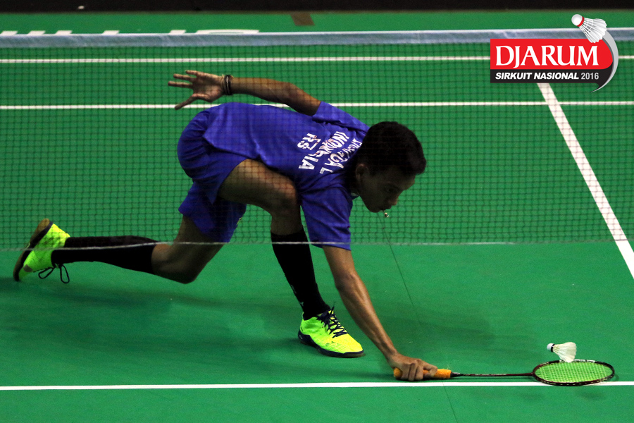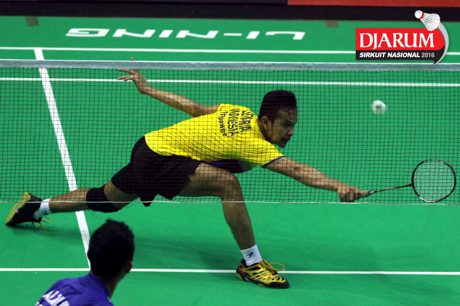 Riyanto Subagja (Djarum Kudus) menghadang serangan