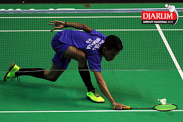 A. K. Zailani (Mutiara Cardinal) mengembalikan shuttlecock