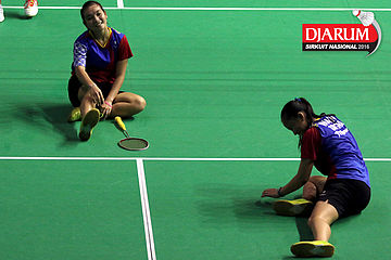 Marisa Vania/Winny Oktavina (Tangkas) terjatuh saat berusaha menghadang serangan