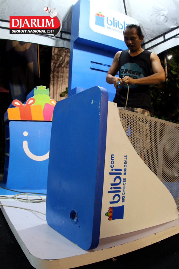 Salah Satu Petugas Saat Menyiapkan Atribut Djarum Sirkuit Nasional Li-ning Jawa Tengah Open 2017