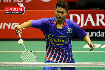 Prayoga Hadi Saputra (Victory Bogor) Mengembalikan Shuttlecock