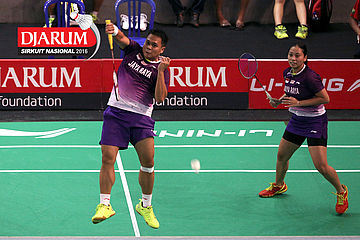 Haffiz Nur Adila/Mia Dian (Djarum Kudus) berusaha menggapai pengembalian