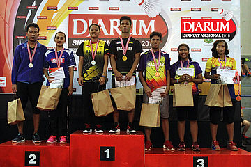 Ardiansyah Putra/Devi Tika (Berkat Abadi Banjarmasin) mengembalikan shuttlecock