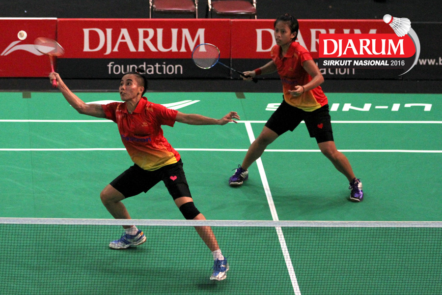 Irfan Fadhilla/Weni Anggraeni (Jaya Raya) mengembalikan shuttlecock
