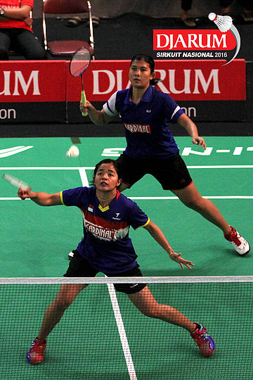 Febriana Dwipuji/Ribka Sugiarto (Djarum Kudus) menyambar pengembalian