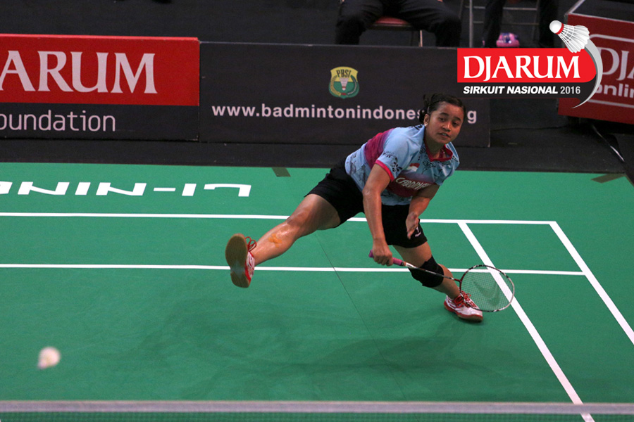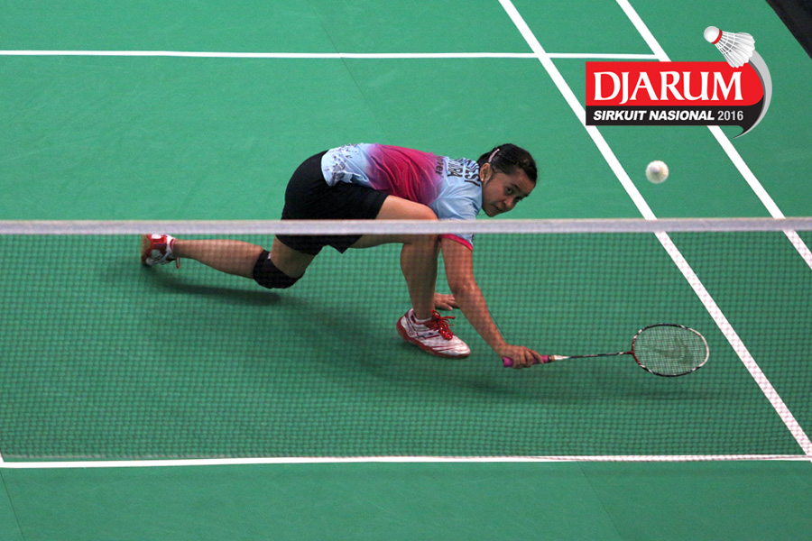 Aprilia Yuswandari (Semen Gresik) mengembalikan shuttlecock