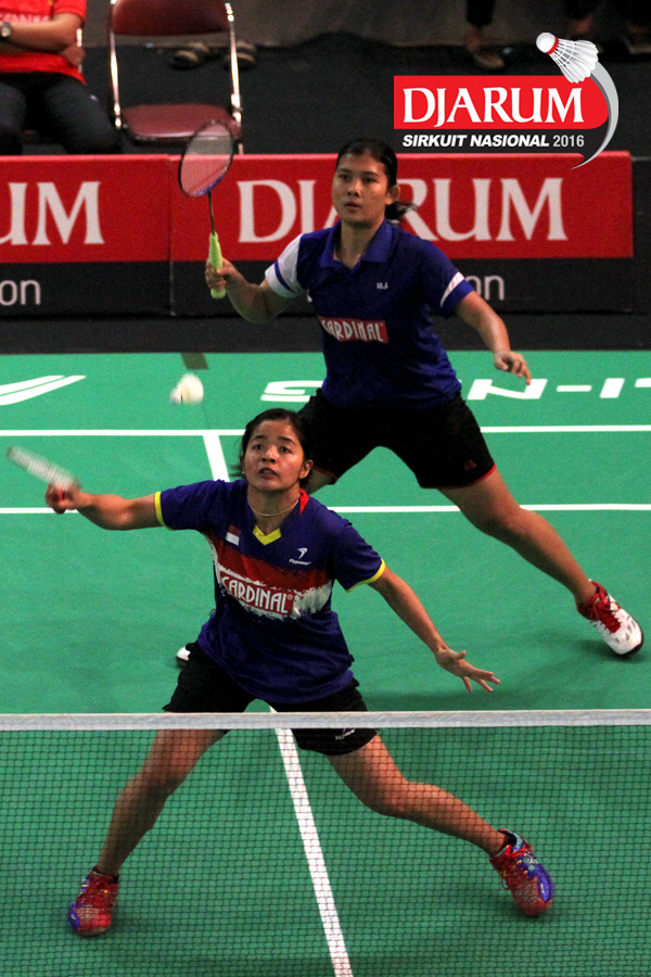 Febriana Dwipuji/Ribka Sugiarto (Djarum Kudus) mengembalikan shuttlecock