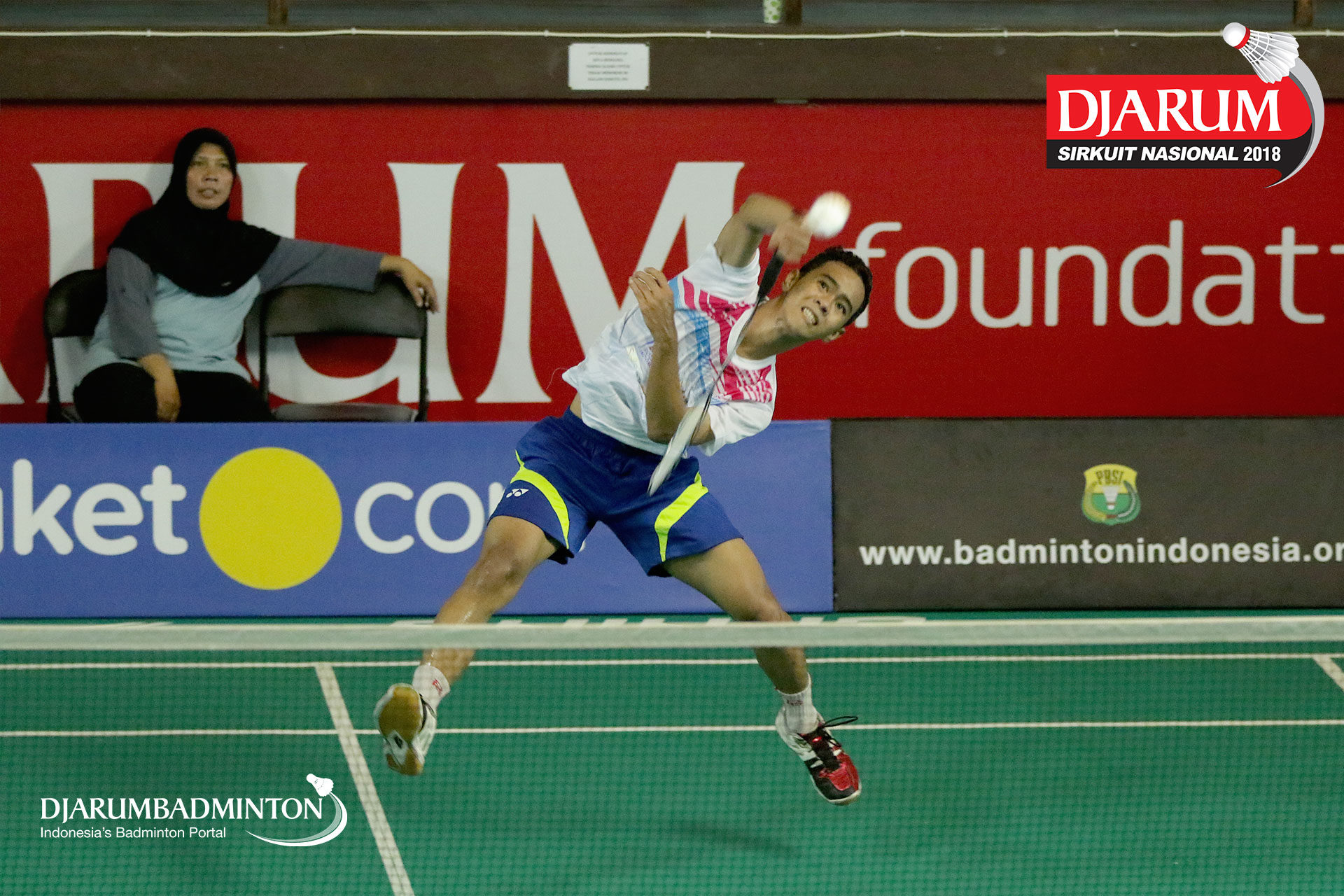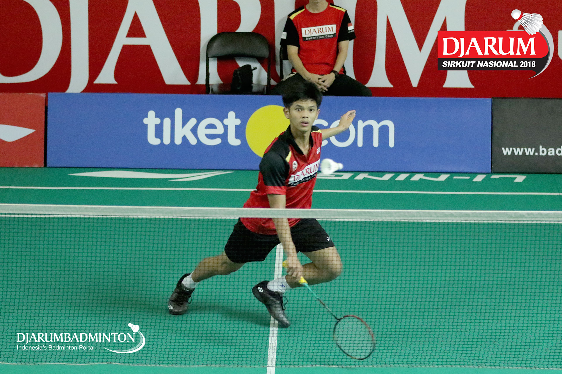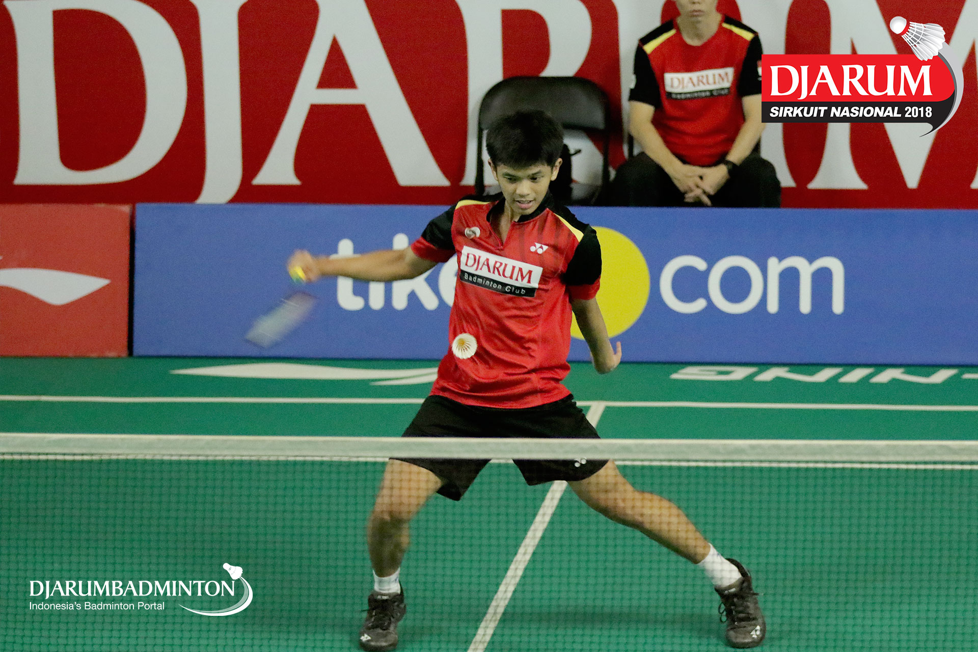 Aldy Firmanda (PB Djarum, Kudus) bersiap menyambut serangan