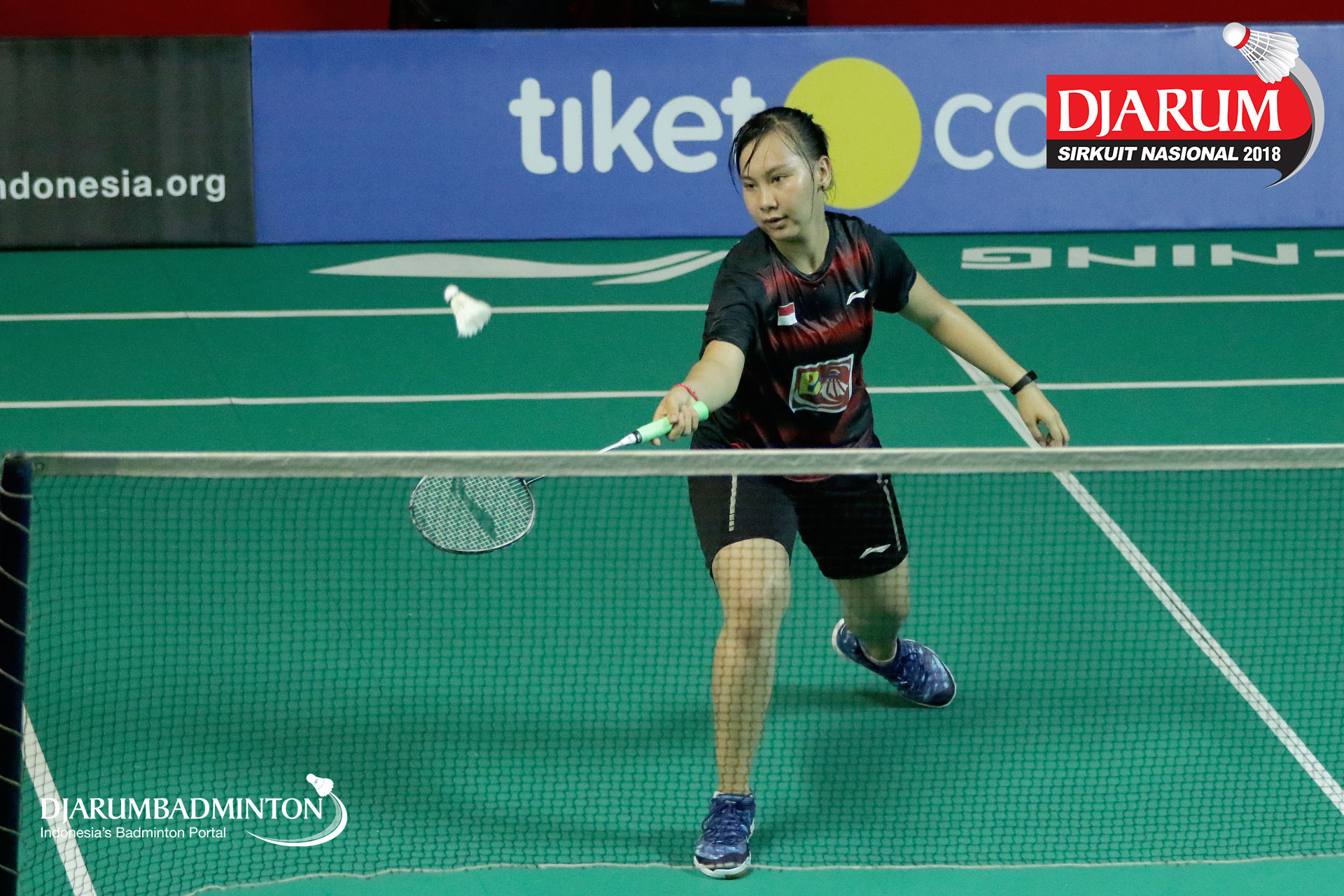 Gabriela Meilani Moningka (Berkat Abadi, Banjar) mengembalikan shuttlecock