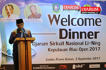 Sambutan Gubernur Prov. Kepulauan Riau Dr. H. Nurdin Basirun, S.Sos, M.Si Saat Welcome Dinner Djarum Sirkuit Nasional Li-Ning Kep. Riau Open 2017