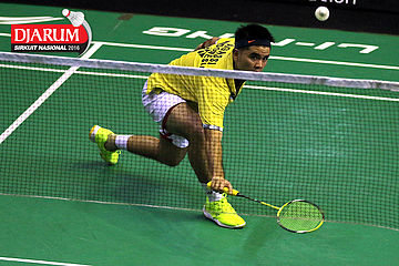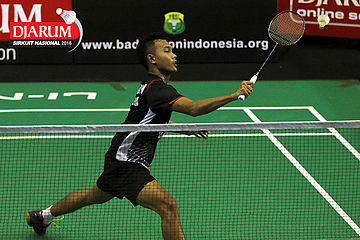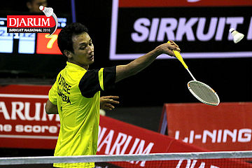 Rio Friza (Jaya Raya) mengembalikan shuttlecock