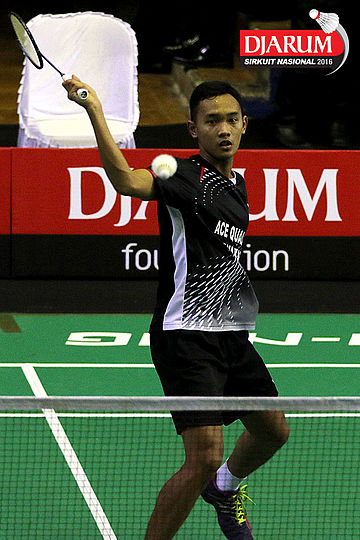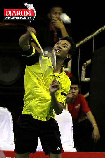Andika Waliyudin (Ade Badminton Club) menyambut pengembalian