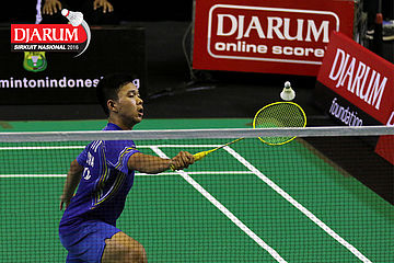 Yohanes Kevin (Mutiara Cardinal) mengembalikan shuttlecock