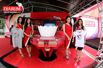 Para Usher berpose di booth Merchandise Djarum Sirkuit Nasional