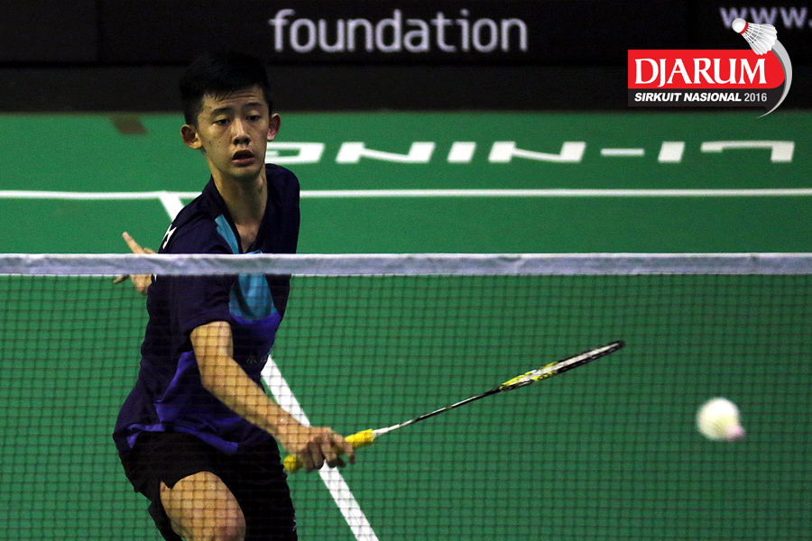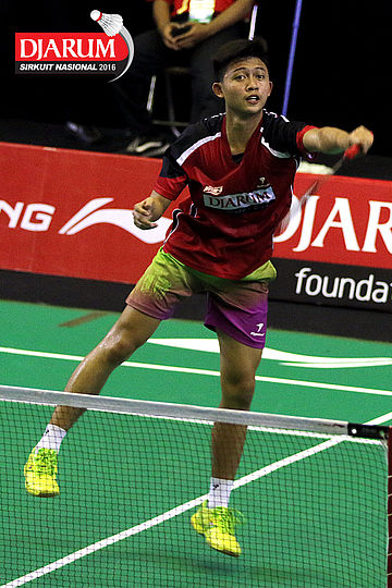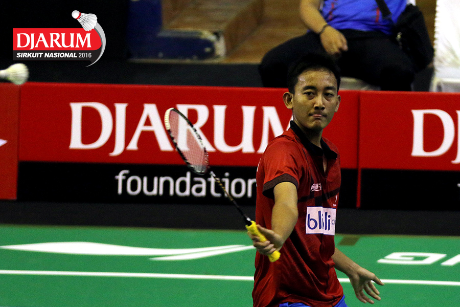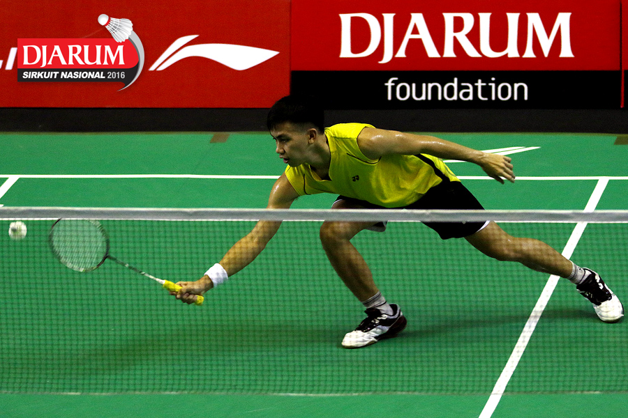 Tri Cahya (Djarum Kudus) melepaskan serangan