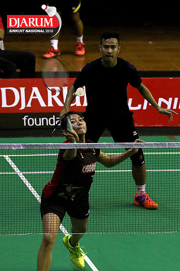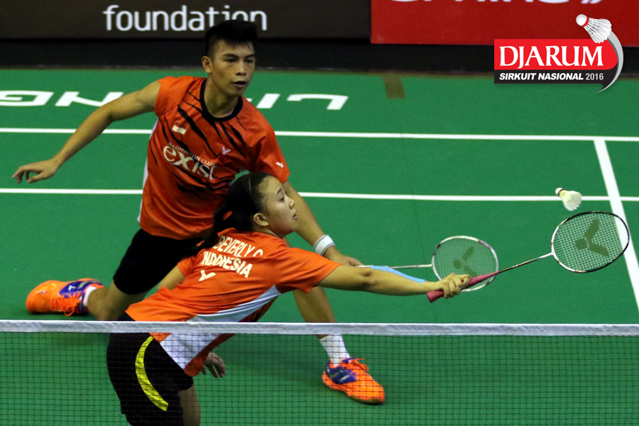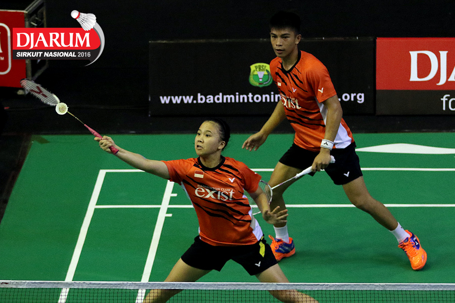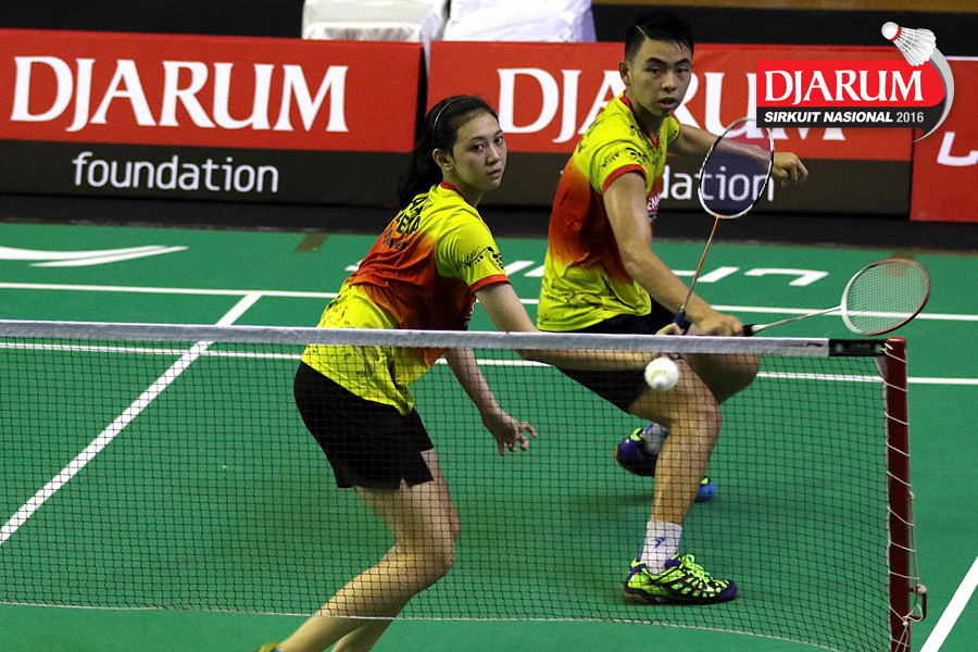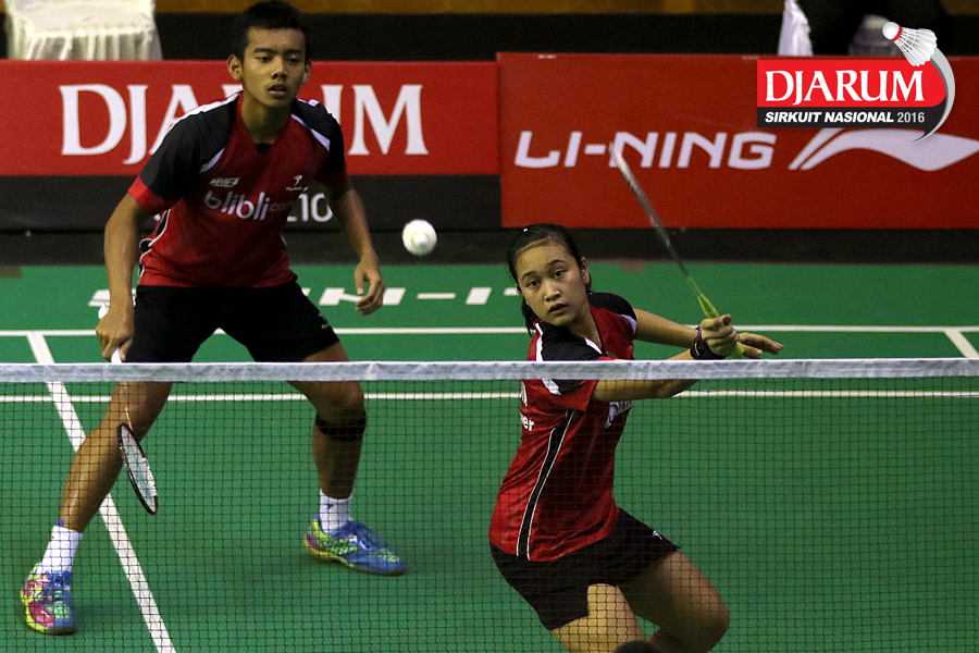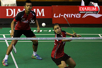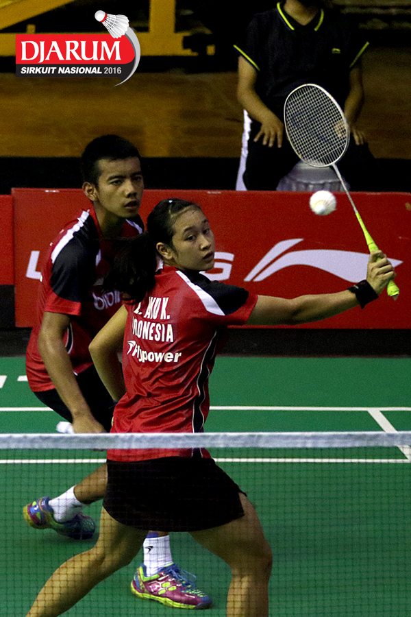 Pramudya Kusumawardana/Lisa Ayu (Djarum Kudus) mengembalikan shuttlecock