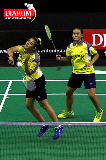 Anggit Warastiwi/Dara Sri (Jaya Raya) mengembalikan shuttlecock