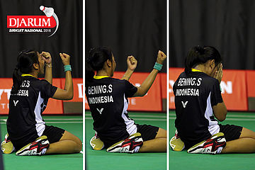 Selebrasi kemenangan Rehan Naufal/Siti Fadia (Djarum Kudus)
