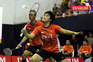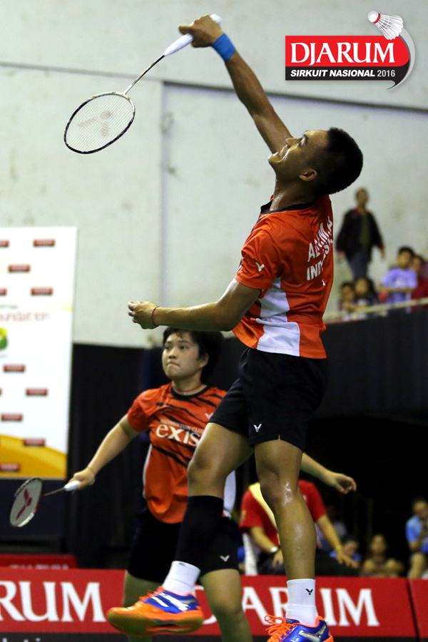 Rehan Naufal/Siti Fadia (Djarum Kudus) menyambut pengembalian