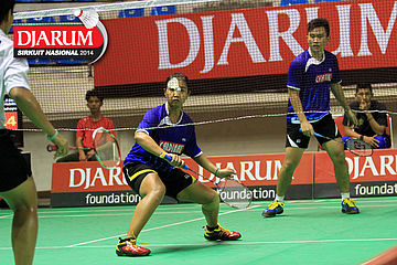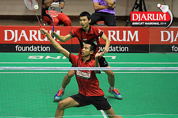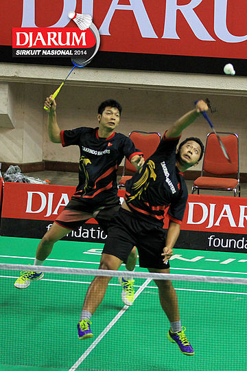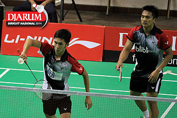 Afiat Yuris W/Yohanes Rendy S (DJARUM KUDUS) menerima serve