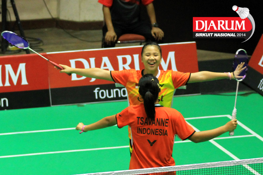 Selebrasi Berverly Gariela/Tsavanne Bethalia (EXIST JAKARTA) setelah berhasil mengalahkan Amira Zerlin H/Munada Choirunnisa (DJARUM KUDUS)