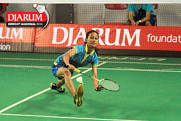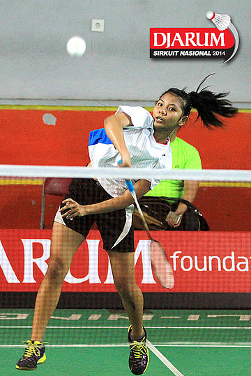 Fajriatul Aulia (Suluh Adrhi Engineering) berusaha menggapai pengembalian dari Tessa Anjeli Karaouw (Tangkas)
